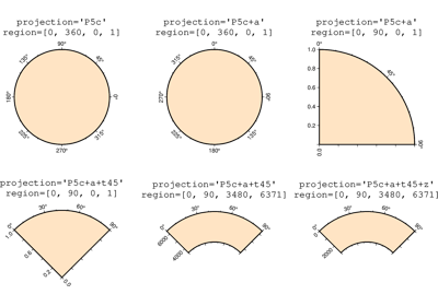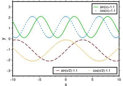 axisparameter; (2) specifying the attributes for each axis separately using thexaxisandyaxisparameters. The attributes for z-axis can only be specified separately using thezaxisparameter.GMT uses the notion of primary (the default) and secondary axes, while secondary axes are optional and mostly used for time axes annotations. To specify the same attributes for both secondary x and y axes, use the